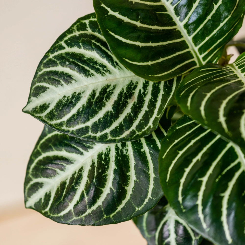 Nombre científico: Aphelandra squarrosa Es una planta de interior, atractiva por sus hojas de color verde oscuro con rayas blancas. Sus flores llamativas suelen ser amarillas, rojas o naranjas. Necesita lugares iluminados fuera del alcance de los rayos directos del sol. Es importante regarla frecuentemente y mantener el sustrato ligeramente húmedo. La falta de humedad puede hacer que esta planta pierda sus hojas rápidamente. No requiere podas, solo es necesario cortar la flor cuando esta se marchite. Presentaciones disponibles: Matero P14: Diámetro: 14 cm * altura: 11