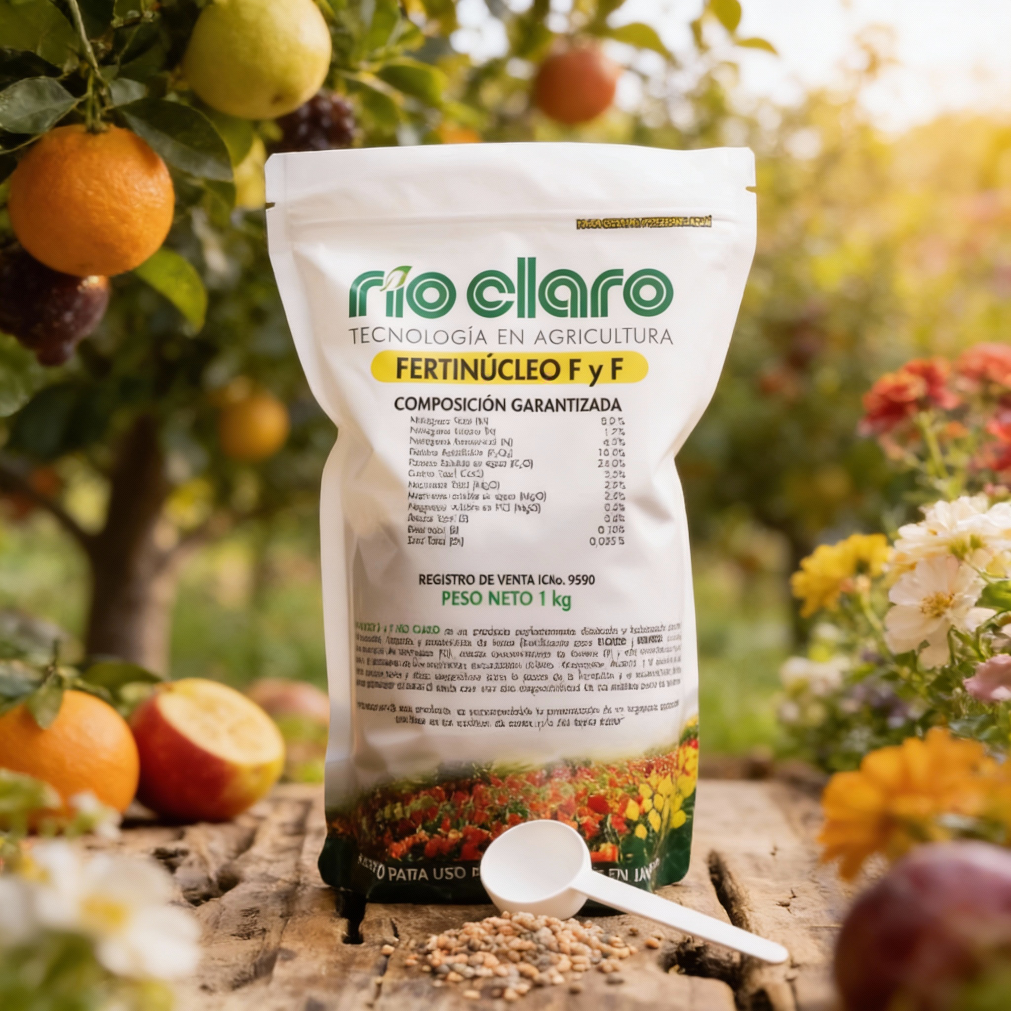 El FERTINÚCLEO FyF® es un producto técnicamente diseñado y balanceado para la etapa de floración, llenado y producción de frutos (Fertilizante para FLORES y FRUTOS); que contiene una baja concentración de nitrógeno (N), media concentración de fósforo (P) y alta concentración de potasio (K); la presencia de los nutrientes secundarios (Calcio – Magnesio – Azufre), y el aporte de los elementos menores boro y zinc, específicos para la etapa de la floración y el cuajamiento de los frutos, para aplicación directa al suelo con una alta disponibilidad de los mismos para las plantas.