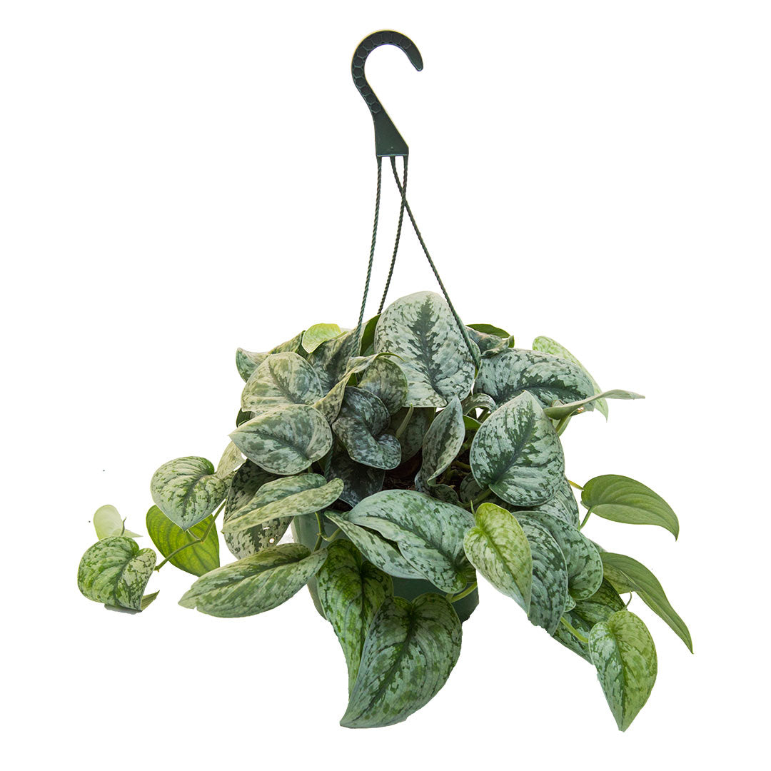 Nombre científico: Planta trepadora o colgante de hojas gruesas color verde, con manchas verde claro- blancas. Genera largos tallos de porte colgante. Su porte y su colorido follaje la convierte en una planta muy interesante. Necesita un espacio bien iluminado, pero sin luz directa. Requiere agua media.